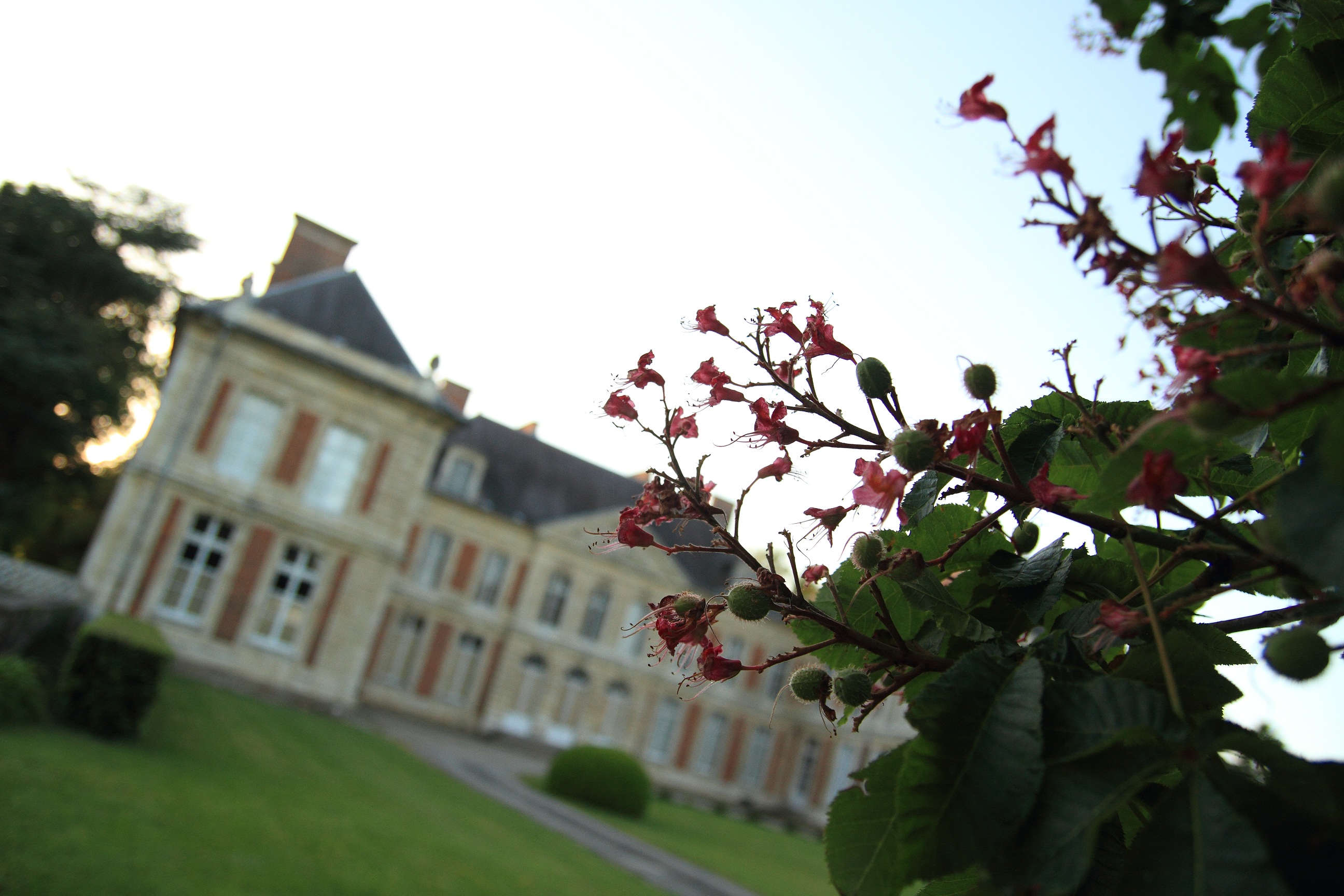 Château derrière une branche Lamas du Parc, Château de Courcelles-sous-Moyencourt