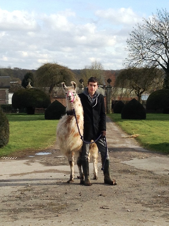 Hercule prend la pose lamas du parc, Château de Courcelles-sous-Moyencourt