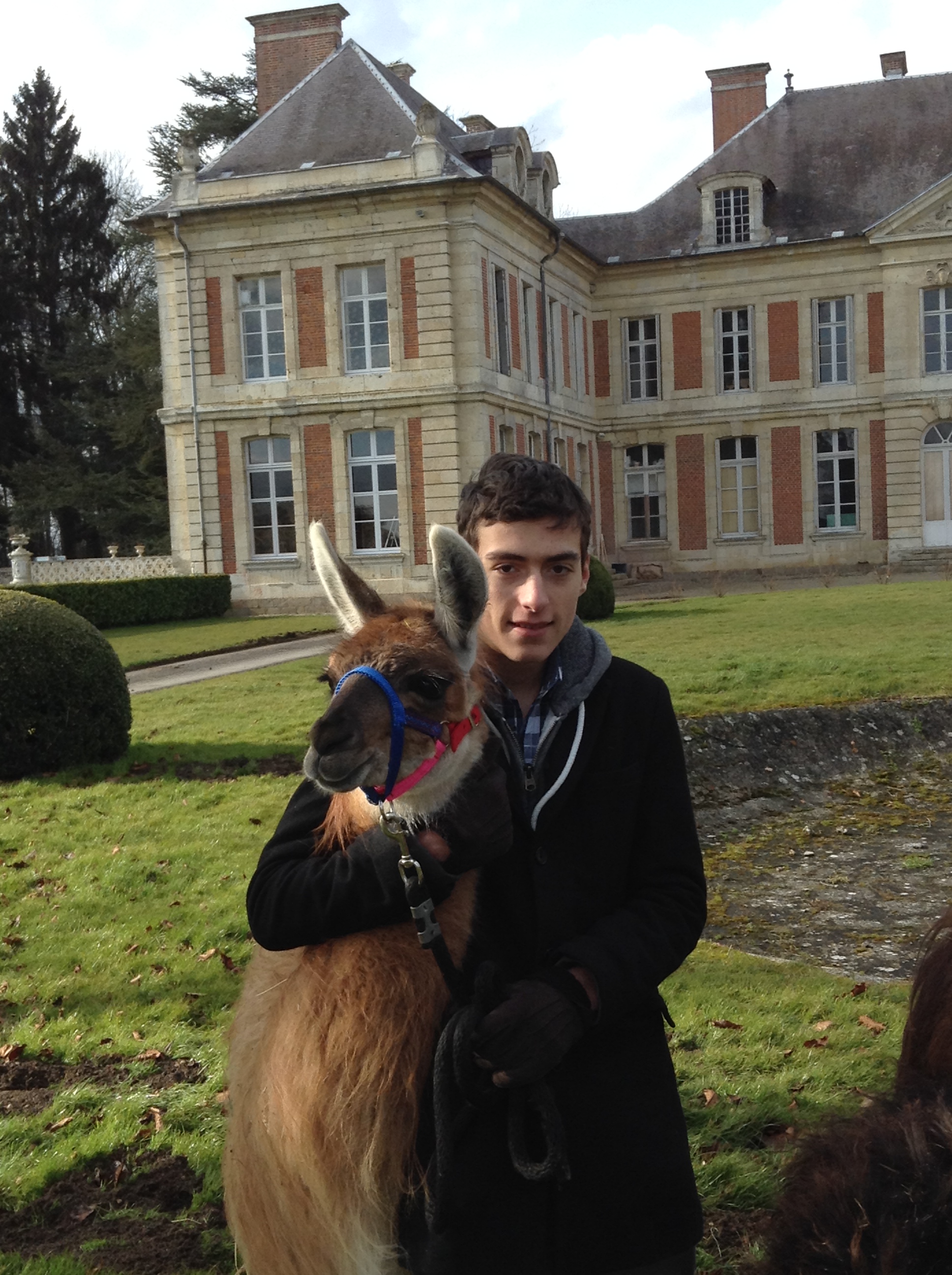 câlin à Skyppi lamas du parc, Château de Courcelles-sous-Moyencourt