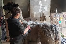 La tonte peut s’effectuer aux ciseaux ou à la tondeuse électrique. Le lama reste debout et se laisse généralement faire facilement s’il a l’habitude d’être manipuler. Il est possible de faire appel à des tondeurs professionnels.