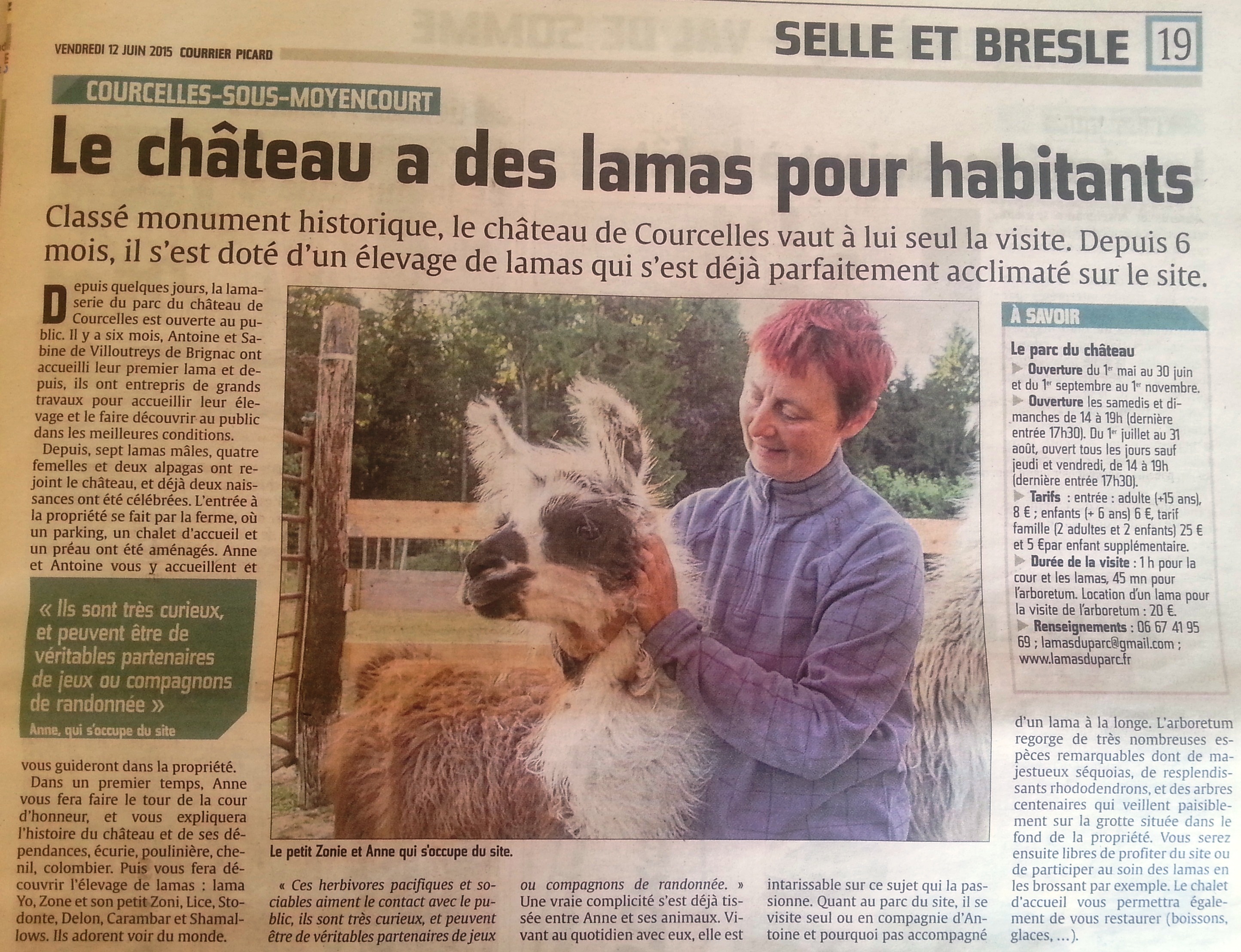 - Le Courrier Picard du 12 juin 2015 a consacré un bel article aux Lamas du Parc et ses coulisses